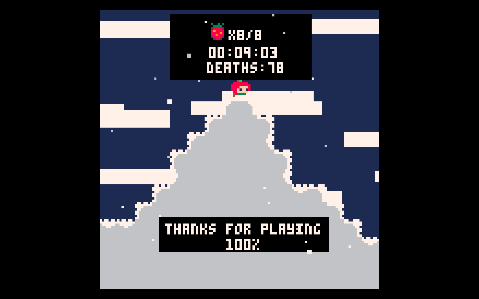 Credits to Matt Thorson and Noel Berry for celeste classic and to RubyRed for the new music and to the Celeste classic discord it's an amazing server full of supportive people